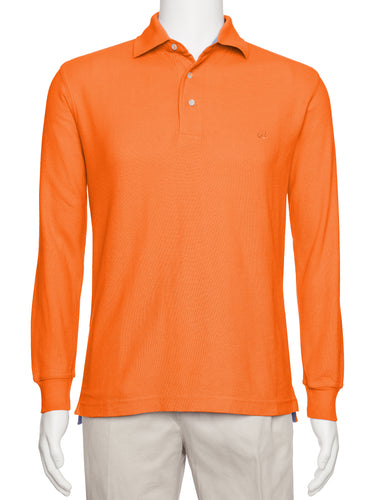 Men's Orange Solid Polo Shirt Classic Fit - Pique Chambray Collar- large sizes- Long Sleeve