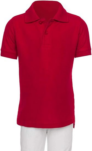 AKA Boys Wrinkle-Free Polo Shirt - Pique Chambray Collar Comfortable Quality - Red - Short Sleeve