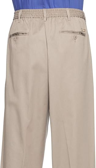 AKA Half Elastic Wrinkle Free Flat Front Men's Slacks – Relaxed Fit Twill Casual Pant - Olive