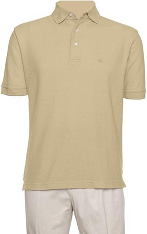 AKA Men's Solid Polo Shirt Classic Fit - Pique Chambray Collar Comfortable Quality - Sand