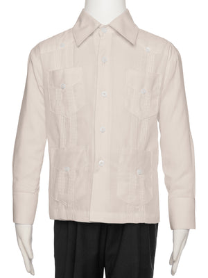 Boys Long Sleeve Linen Look Guayabera Shirt