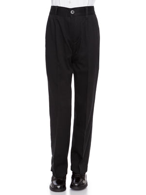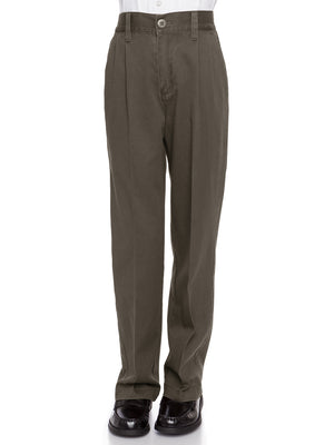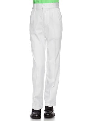 Boys Pleat-Front Traditonal Fit Back Elastic Cotton Twill Pants