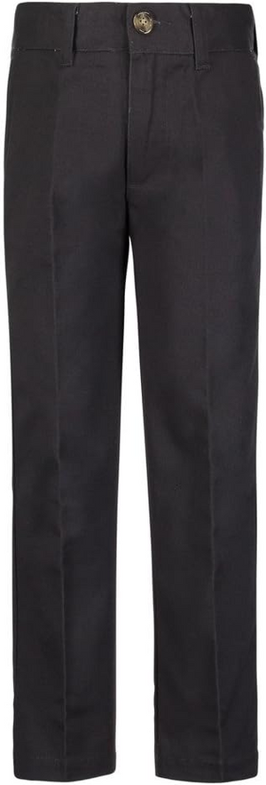 Boys Uniform Straight Twill Pant - Flat Front Wrinkle Free Cotton Slacks - Charcoal