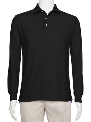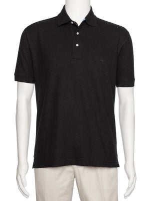 Men's Black Solid Polo Shirt Classic Fit - Pique Chambray Collar