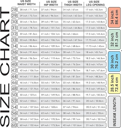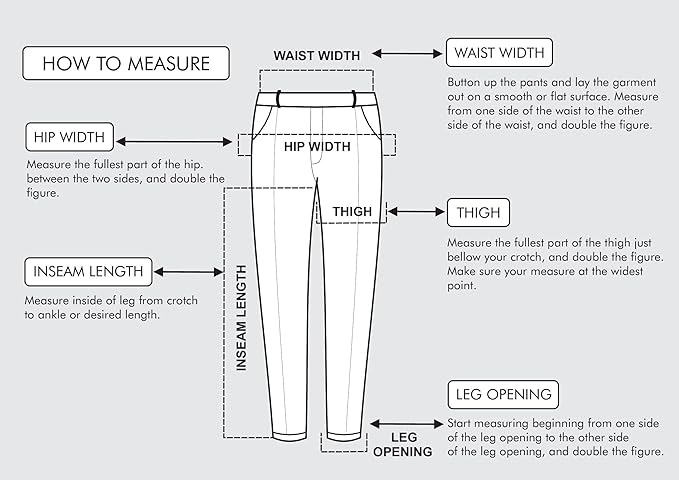 - DETAILED DESIGN AND SIZING Features 2 side seam pockets and 2 back pockets. Includes regular waist band, belt loops, and zip fly. Front closure consists of a hidden button and hidden metal clasp. Trouser legs are hemmed so they can be easily adjusted to size. These pants are available in the following sizes: 28, 29, 30,31,32,33,34,36,38,40,42,44,46,48,50,52,54,56,58,60. All colors come in 30”, 32” and 34” lengths. Some colors are available in 29”.