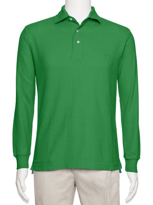 Men's Green Solid Polo Shirt Classic Fit - Pique Chambray Collar- large sizes