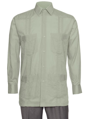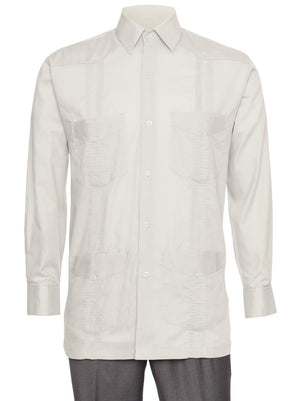 Mens Long Sleeve Linen Look Guayabera Shirt