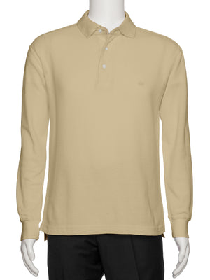 Men's Sand Solid Polo Shirt Classic Fit - Pique Chambray Collar- large sizes