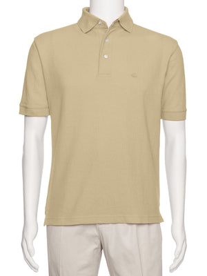 Men's Sand Solid Polo Shirt Classic Fit - Pique Chambray Collar- Short Sleeve