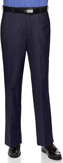 Mens Slim fit Dress Pants Flat-Front - Modern Formal Business Wrinkle Free No Iron - Navy