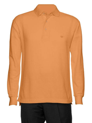 Men's Tangerine Solid Polo Shirt Classic Fit - Pique Chambray Collar- Long Sleeve
