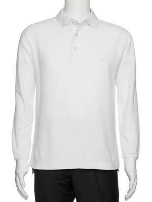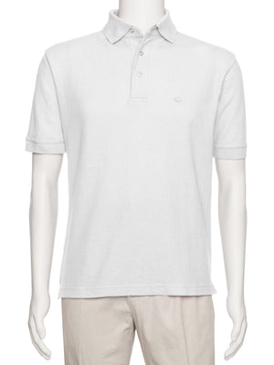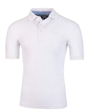 Men's White Solid Polo Shirt Classic Fit - Pique Chambray Collar