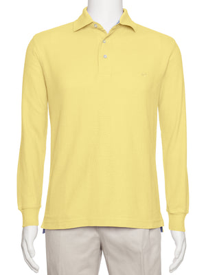 Men's Yellow Solid Polo Shirt Classic Fit - Pique Chambray Collar