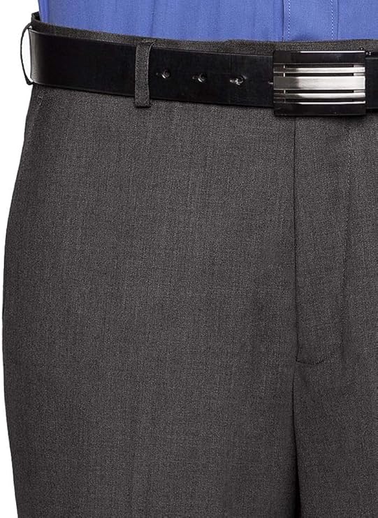 - DETAILED DESIGN These slacks are designed with a flat front, double side and back welt pockets, non-elastic waistband with belt loops, zip fly with button and clasp closure, and hemmed cuff.
